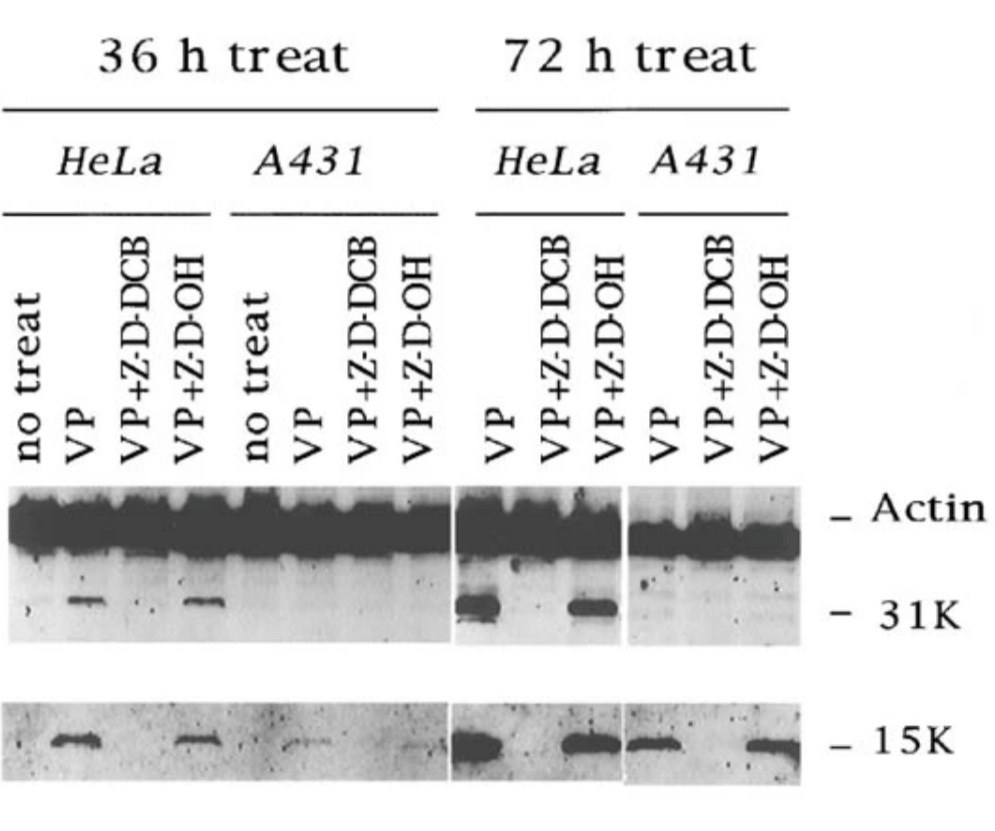 Plusieurs centaines de protéines sont clivées par les caspases lors de l’apoptose. Elles ciblent notamment des protéines structurales comme les constituants du cytosquelette : actine, kératines et lamines nucléaires (Caulin et al., 1997; Mashima et al., 1997). Cela participe à la condensation cytoplasmique et nucléaire observée lors de cette mort cellulaire.