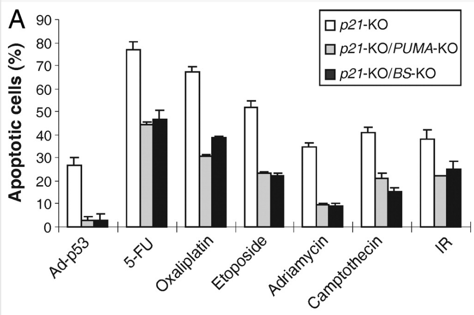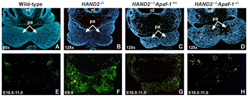 Eliminer l’expression de APAF-1 et donc abolir la formation de l’apoptosome peut sauver des cellules embryonnaires de l’apoptose comme dans l’exemple suivant :