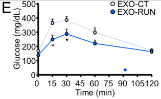 Lors d’un exercice musculaire intense les cellules musculaires striées squelettiques relarguent des exosomes contenant des microARN à destination du foie qui aboutissent à une meilleure sensibilité à l’insuline et donc à une meilleure régulation de la glycémie (Castano et al., 2020).