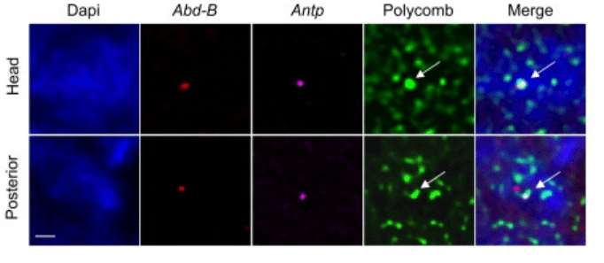 Précisons que les protéines Polycomb et Trithorax ont des cibles bien plus larges que juste les gènes du complexe HOM-C.