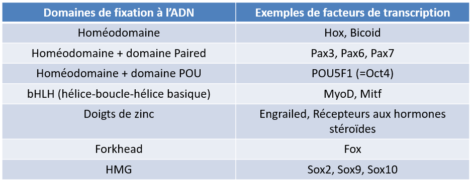 - la reconnaissance de séquences spécifiques sur l’ADN (dans le promoteur ou les enhancers)