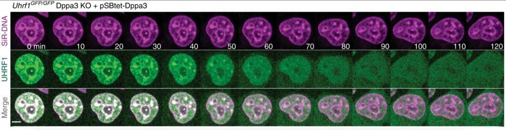 Des souris déficientes en DNMT1 meurent à la gastrulation, ce qui démontre le rôle très important de la méthylation de maintien. Elle ne fonctionne pas seule : UHRF1 (ou NP95) est une protéine qui se fixe sur le double brin d’ADN issu de la réplication et reconnait les sites hémiméthylés (méthylés que sur un seul brin) et elle recrute alors DNMT1.