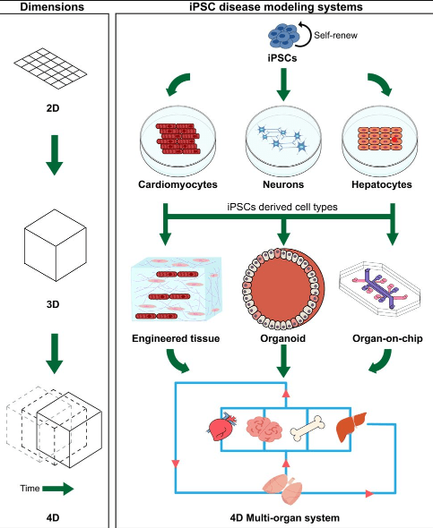 Les cellules souches pluripotentes que ce soit les cellules embryonnaires souches (ES) issues des blastocytes ou les cellules induites iPS sont maintenant une grande ressource pour connaître les étapes du développement embryonnaire humain et pouvoir expérimenter sur ces étapes. La topologie en 2D de la culture cellulaire classique a laissé la place à des cultures en 3D menant à la formation d’organoïdes qui présentent des similitudes importantes avec les mêmes organes dans les embryons.