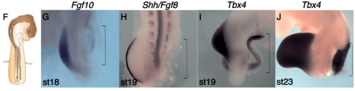 *1.2 Analysez et interprétez les résultats de cette expérience concernant la morphologie et les expressions de FGF10, FGF8 et Shh.