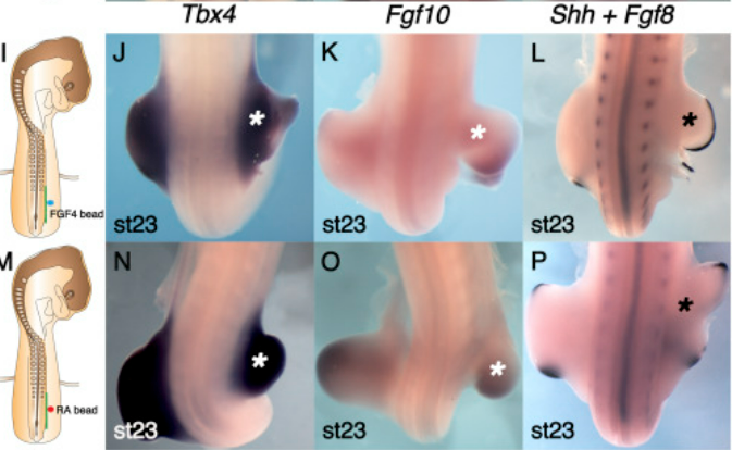*1.4 Que peut-on conclure de ces expériences sur le rôle du FGF4 et de l’acide rétinoïque au cours du développement précoce du bourgeon de membre ? Est-ce que ce sont les inducteurs en provenance du mésoderme pré-somitique ?