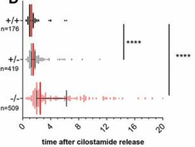 2.1 : Des ovocytes non ovulés chez des souris adultes sont bloqués en prophase I de méiose. La première division de méiose n’a pas encore séparé les chromosomes paternels et maternels, donc les ovocytes des femelles Ccnb2+/- possèdent un allèle sauvage et un allèle muté perte-de-fonction. 2.2 : On vérifie que l’expression de CCNB2 est bien abolie dans les ovocytes issus des femelles Ccnb2-/- et que l’expression est diminuée environ de moitié dans les ovocytes issus des femelles Ccnb2+/-. Le western-blot permet aussi de vérifier que l’expression du partenaire de CCNB2, CDK1 n’est pas affectée par la diminution ou l’absence de CCNB2. 2.3 : On observe qu’en absence de CCNB2, CDK1 est nettement moins capable de phosphoryler PP1 (moins de la forme phosphorylée avec autant de PP1 total). On en déduit que CCNB2 est nécessaire à la bonne activité kinase de CDK1 (au moins lorsque sa cible est PP1). 2.4 : Lorsqu’il y a une diminution de la quantité de CCNB2 (et encore plus lorsqu’il n’y en a plus), la reprise de la méiose prend plus de temps. Notons tout de même qu’elle a lieu donc CCNB2 n’est pas entièrement nécessaire mais permet d’accélerer le processus. On peut imaginer que d’autres cyclines B et notamment cycline B1 (CCNB1) peuvent finir par compenser l’absence de CCNB2.
