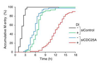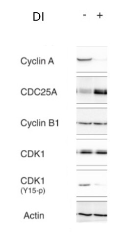 *4.2 Quel est l’effet sur l’expression de la dégradation de la cycline A sur l’expression de CDC25A ? Donnez des hypothèses pour l’expliquer.
