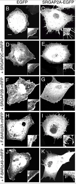 *7.2 Quel est l’effet de SRGAP2C et de SRGAP2B sur l’action de SRGAP2A ?