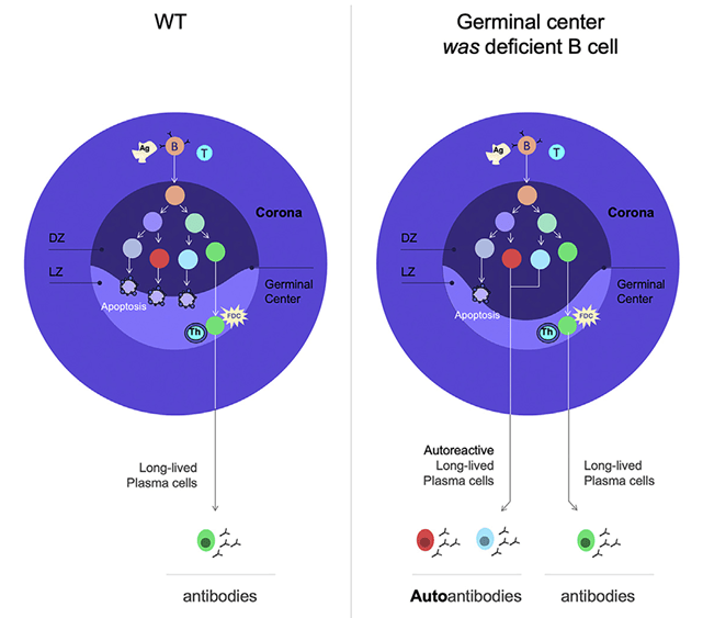 Les cellules B défectueuses en WASp acquièrent une auto-réactivité lors de la réaction du centre germinal. Source : https://www.cell.com/cell-reports/fulltext/S2211-1247(22)00207-8