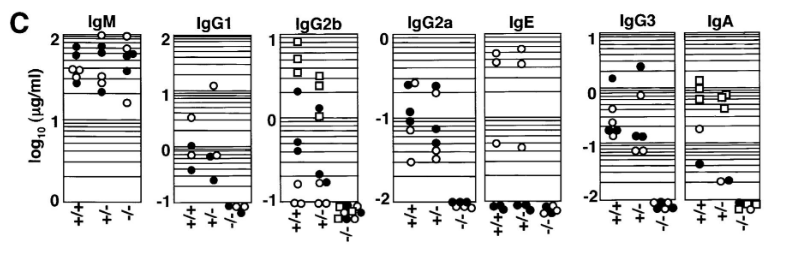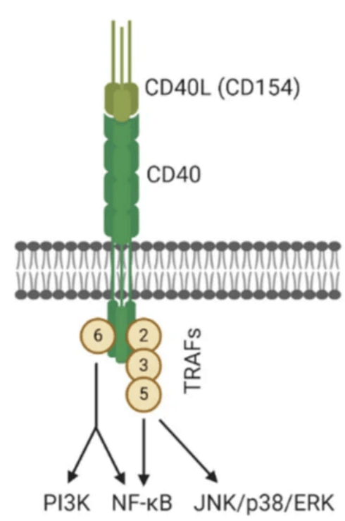 Signalons que le virus d’Epstein-Barr (qui infecte 95% de la population et qui peut causer la mononucléose) et qui reste dormant dans les lymphocytes B mémoire stimule la survie de ces lymphocytes grâce à la protéine d’origine virale LMP2A qui mime un BCR activé et stimule les voies de signalisation ERK/MAPK et PI3K (Merchant et al., 2001, Portis et al., 2004, Fish et al., 2020). LMP2A bloque cependant les autres voies activées par BCR.