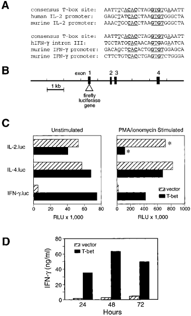 Les cytokines qui interviennent dans la différenciation des lymphocytes T auxiliaires activent les voies de signalisation en aval et conduisent à l’activation de l’expression d’un facteur de transcription maître. Chacun de ces facteurs maîtres de transcription est responsable de la définition des programmes de transcription pour chaque sous-ensemble T auxiliaire et affine l’expression des cytokines appropriées pour contrôler la réponse immunitaire. Par exemple, T-bet contrôle la différenciation des cellules Th1 en activant l’expression d’IFNγ tout en supprimant l’expression des cytokines typiques de Th2, tels que IL4 (Szabo et al., 2000).