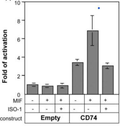 Les cellules présentatrices d’antigène (APC) telles que les lymphocytes B expriment CD74 qui fonctionne de manière intracellulaire comme un chaperon pour les molécules du complexe majeur d’histocompatibilité (MHC) de classe II (Stumptner-Cuvelette et Benaroch, 2002). Une petite proportion de CD74 subit des modifications post-traductionnelles par l’ajout de sulfate de chondroïtine (CD74-CS), et cette forme de CD74 est dirigée vers la membrane plasmique (Naujokas et al., 1993). Les ligands naturels du CD74 sont des membres de la superfamille des cytokines du facteur inhibiteur de la migration des macrophages (MIF) (Leng et al., 2003), qui se lient au CD74 pour induire la formation d’un complexe avec CD44. Ce complexe de récepteurs est essentiel pour l’initiation d’une cascade de signalisation nécessaire à la régulation du maintien des lymphocytes B (Gore et al., 2008; Shi et al., 2006) via l’activation de la voie PI3K/AKT. Le complexe est internalisé dans les compartiments endocytaires où il est clivé, libérant le fragment de domaine intracellulaire CD74 (CD74-ICD). CD74-ICD se transloque dans le noyau, où il induit la phosphorylation du domaine d’activation p65 du facteur nucléaire κB (NF-κB) et, avec son co-activateur, augmente l’expression de TAp63.