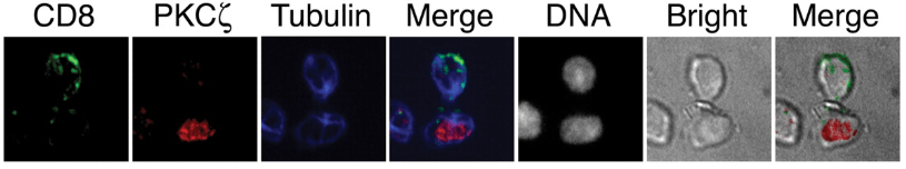 Les lymphocytes T CD8 répondent aux antigènes présentés sur les complexes protéiques du CMH de classe I et se différencient en lymphocytes T cytotoxiques (CTL) qui expriment des protéines cytolytiques (perforines, granzymes…) et interviennent directement dans l’élimination des cellules infectées par le virus et des cellules tumorales. Lors de la première division suivant la présentation de l’antigène, une division asymétrique permet de former un précurseur de CTL et un précurseur de lymphocytes T mémoire (Chang et al., 2007).