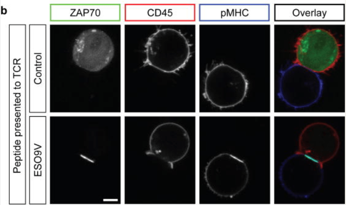 Les TCR sont très sélectifs et très sensibles : on estime qu’entre 1 et 10 exemplaire(s) de l’antigène est capable d’activer un lymphocyte T et avec une affinité à peine supérieure à des molécules qui ne suscitent pas ou peu de réponses des cellules (Sykulev et al., 1996; Huang et al., 2013).