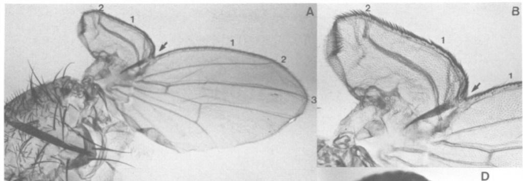 Le disque imaginal d’aile de la drosophile est un modèle classique de développement, notamment pour la signalisation et pour le rôle des gènes Hox, tout particulièrement Ultrabithorax qui réprime le développement du disque imaginal de l’aile dans le troisième segment thoracique et qui le transforme en haltère chez les Diptères (comme la drosophile). Les axes de polarité des futures structures sont déjà mises en place dans les disques imaginaux avant la métamorphose.