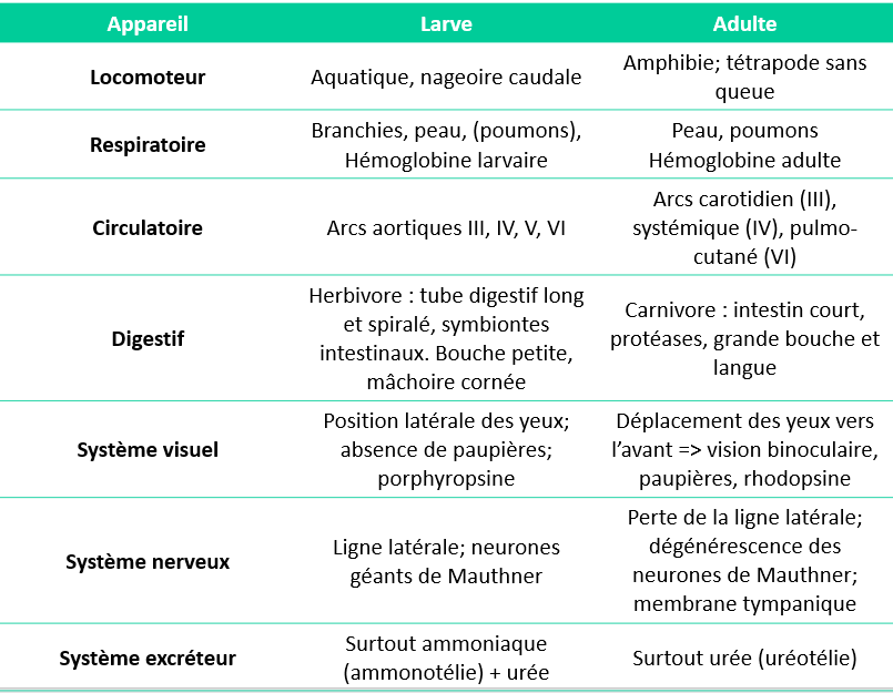 De très nombreuses structures sont remaniées lors de la métamorphose, des structures disparaissent complètement et de nouvelles se développent.