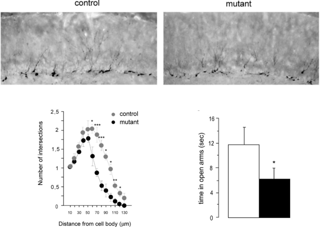La neurogenèse dans la SGZ est également importante pour le contrôle de l’anxiété. Lorsque la maturation des nouveaux neurones est perturbée par une diminution de la sécrétion du facteur neurotrophique BDNF ou par une mutation perte-de-fonction dans le récepteur TrkB sur les nouveaux neurones, les souris sont plus anxieuses dans les tests comme le labyrinthe en croix surélevé (Bergami et al., 2008; Pla et al., 2013).