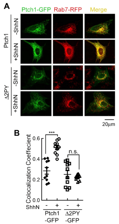 Des expériences indiquent que Patched doit se trouver dans le cil primaire pour que la voie de signalisation Hedgehog soit activée. En effet, un mutant Ptch1 qui produit une protéine avec sa queue C-terminale délétée ne plus entrer dans le cil mais peut toujours fixer le ligand Hedgehog. Or cette forme est incapable de transduire le signal (Kim et al., 2015).