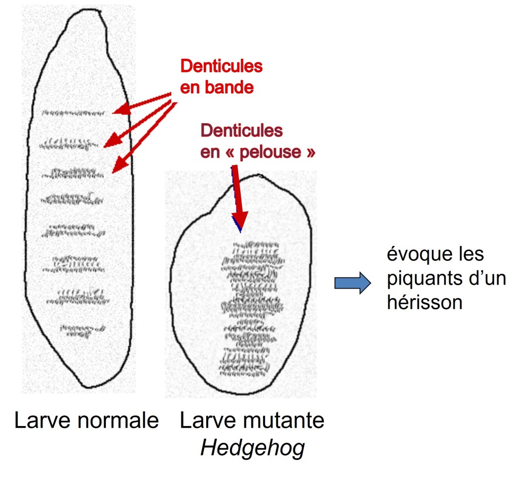 Les protéines sécrétées par la famille Hedgehog (Hh) sont des morphogènes qui ont été initialement identifiés chez la drosophile. Chez la drosophile, Hh est co-responsable (avec Wingless) de la régionalisation lors de la segmentation embryonnaire (gène de polarité segmentaire) et du développement des disques imaginaux larvaires (Lee et al., 2016). Le gène tire son nom du fait que la larve ressemble à un hérisson avec une multitude de denticules pointus resserrés.