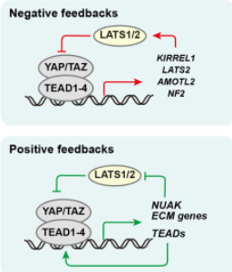 Il peut exister des retrocontrôles négatifs ou positifs de la voie Hippo.