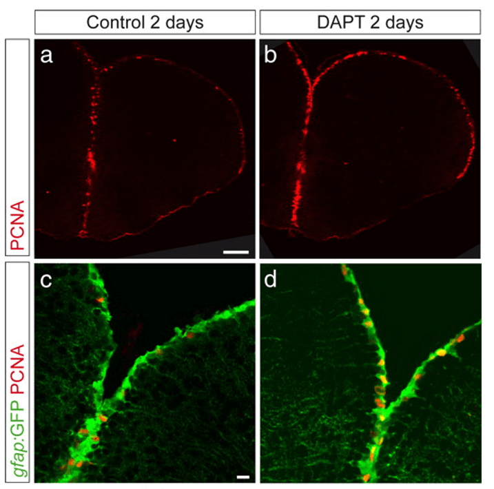 Une telle « inhibition cis » est importante dans divers processus de développement, notamment la neurogenèse, la formation des ailes chez la drosophile et le maintien des cellules souches épidermiques humaines postnatales (Jacobsen et al., 1998; Franklin et al., 1999; Lowell et al., 2000, Negri et al., 2019).