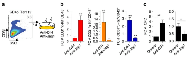 Les récepteurs Notch possèdent plusieurs ligands. Par exemple, deux ligands (Delta et Serrate) existent chez la drosophile et cinq (DLL1, DLL3, DLL4, JAG1 et JAG2) se trouvent chez l’homme. L’existence de plusieurs ligands explique, en partie, la régulation spatio-temporelle de l’activité de Notch, et peut également contribuer à moduler les niveaux et la durée des signaux. Différents ligands peuvent également déclencher des réponses distinctes via le même récepteur Notch. Par exemple, les ligands Jagged et Delta conduisent à des destins différents lors de la détermination cellulaire au cours du développement de l’oreille interne, de l’angiogenèse et de l’hématopoïèse (Benedito et al., 2009 ; Petrovic et al., 2014). Par exemple, les cellules souches hématopoïétiques (CSH) se développent à partir de cellules à caractères endothéliales dans la paroi de l’aorte de l’embryon. Jagged1 active faiblement la voie Notch dans certaines cellules qui vont alors inhiber le programme de différenciation endothélial et activer le programme de transformation en CSH, tandis que les cellules qui interagissent avec DLL4 activent fortement la voie Notch et s’engagent définitivement dans la différenciation endothéliale (Gama-Norton et al., 2015).