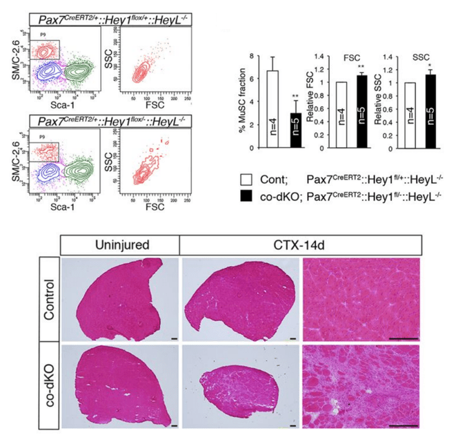 La voie de signalisation Notch est aussi impliquée dans le contrôle du nombre de cellules satellites (les cellules souches qui permettent de régénérer le tissu musculaire squelettique strié).