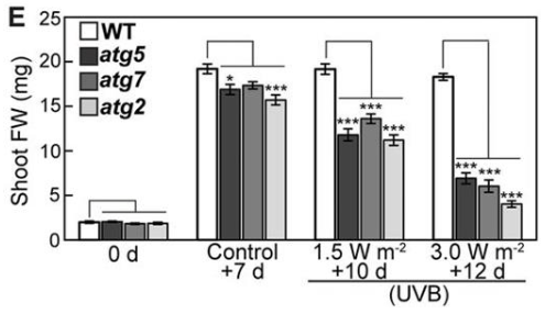 Chez les végétaux, les plantes privées d’autophagie (mutants atg) sont très sensibles au manque de carbone et d’azote et présentent une sénescence précoce et une croissance réduite (Doelling et al. 2002; Li et al. 2015; Barros et al. 2017), ainsi que des retards dans la germination (Yoshimoto et al. 2014; Avin-Wittenberg et al. 2015).