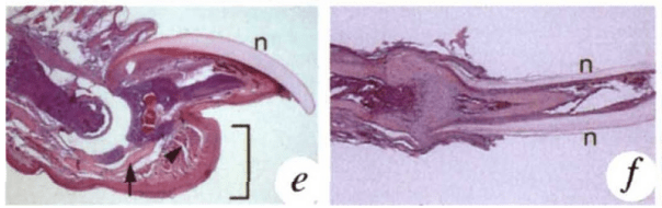 Dans la future aile de la chauve-souris ainsi que dans la future patte postérieure de canard, on n’observe pas d’apoptose contrairement aux futures pattes de la souris ou du poulet.