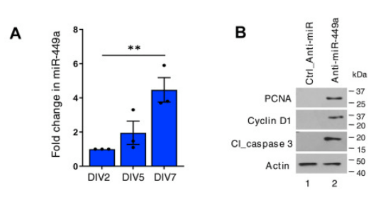 Des régulations traductionnelles ont lieu comme le montre le rôle joué par le microARN miR-449a dans l’arrêt de la prolifération des précurseurs neuronaux. miR-449a cible les ARNm de CDC25A et de Cycline D1 qui codent des protéines qui favorisent la prolifération (Chauhan et al., 2024).