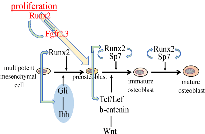 La détermination et la différenciation des ostéoblastes est un processus activé notamment par le facteur de transcription Runx2.