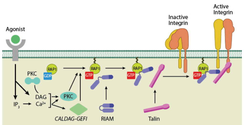 La liaison des intégrines à leur ligand modifie la conformation de l’hétérodimère tant dans leur domaine extracellulaire qu’intracellulaire.