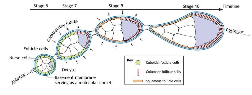 Parfois, la lame basale peut provoquer des contraintes mécaniques sur les tissus et changer leur forme comme lors de la maturation des ovarioles chez la drosophile femelle.