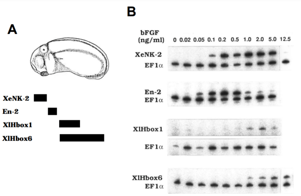 On constate que des doses moyennes et fortes induisent l’expression des gènes Hox (voir un peu plus bas sur le rôle de ces gènes). Pour ce faire, la signalisation FGF active l’expression des gènes de la famille Cdx.