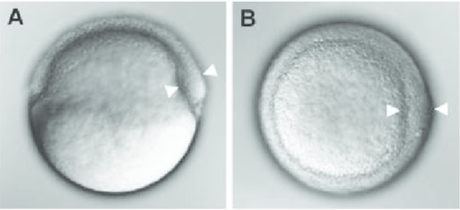 Des mécanismes similaires à ceux du xénope ont été découverts chez le poisson-zèbre avec quelques différences toutefois (Tuazon et Mullins, 2015; Zinski et al., 2017). Chez le poisson zèbre, le bouclier embryonnaire est un tissu équivalent à la lèvre dorsale du blastopore de l’embryon de xénope. La transplantation du bouclier embryonnaire dans la face ventrale d’un embryon de poisson zèbre entraîne également la formation d’un axe dorsal secondaire avec une structure de tête complète (Saude et al., 2000).